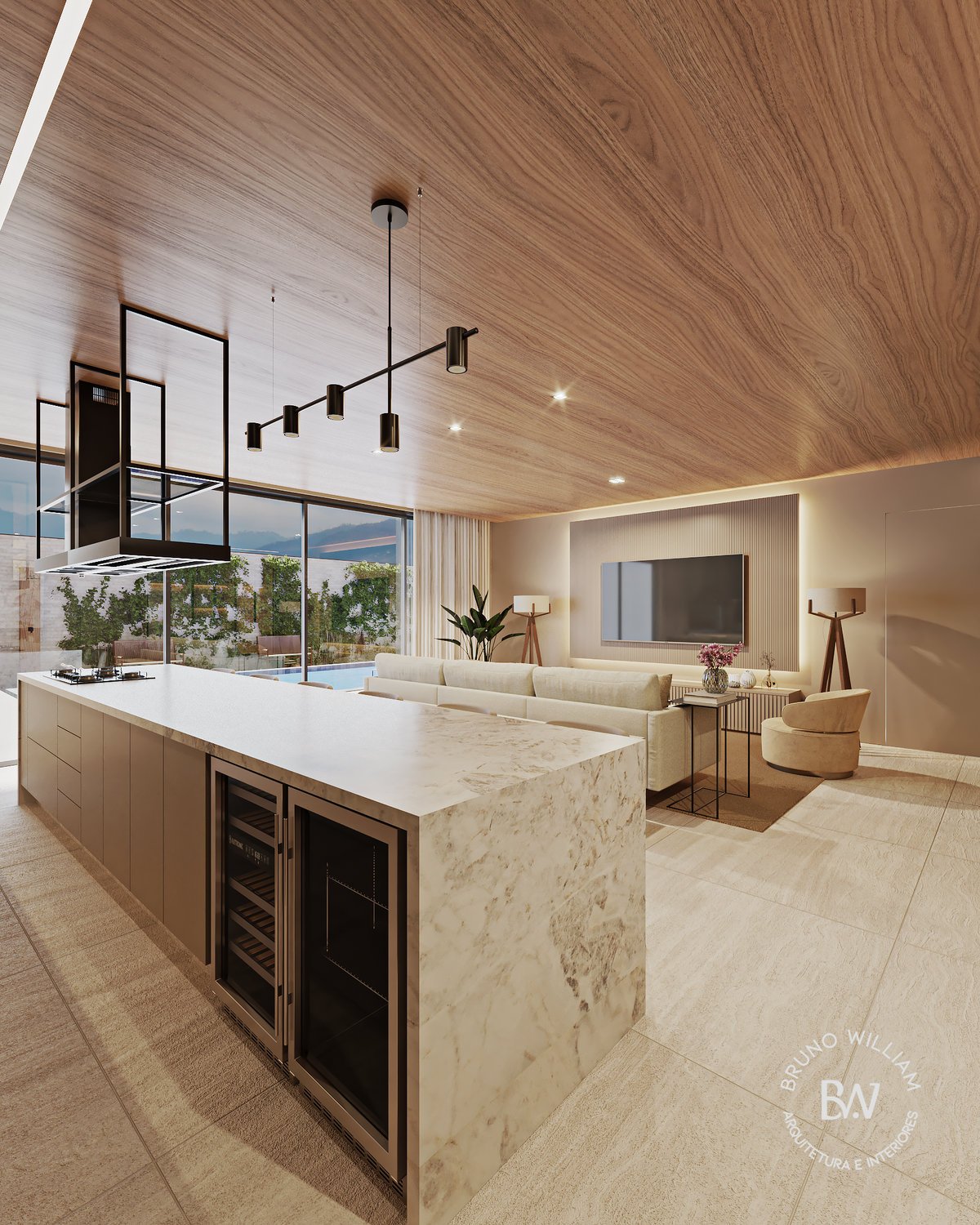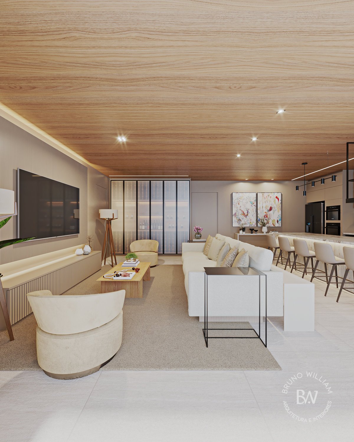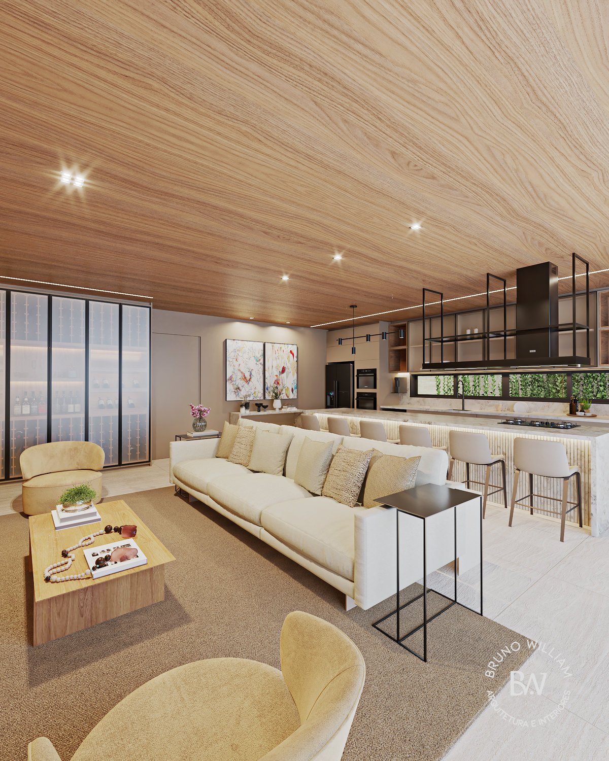 Um espaço que combina design acolhedor, integração e sofisticação. Do forro amadeirado à iluminação suave, tudo convida a viver bons momentos com quem importa. Funcionalidade e beleza caminham juntas nesse espaço pensado para receber, viver e aproveitar. Cada elemento foi escolhido com propósito: leve, elegante e atemporal.