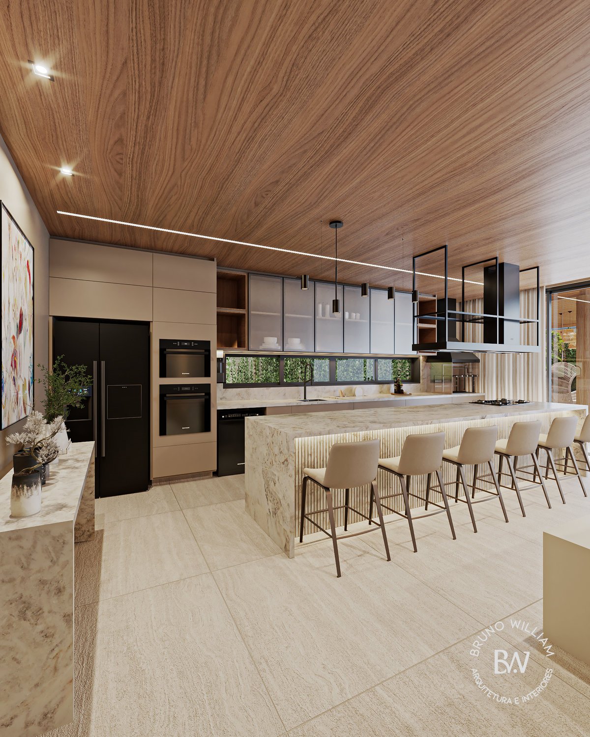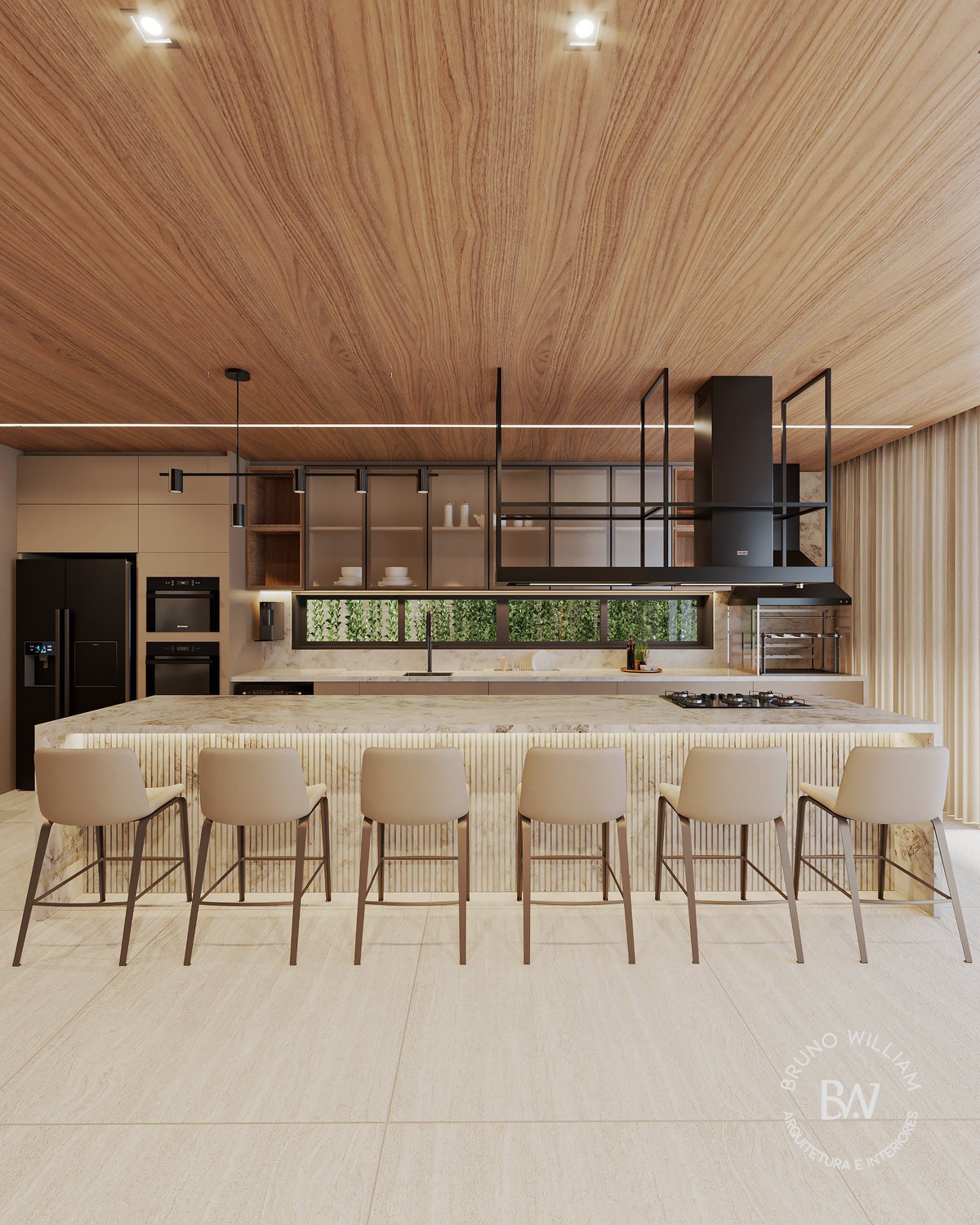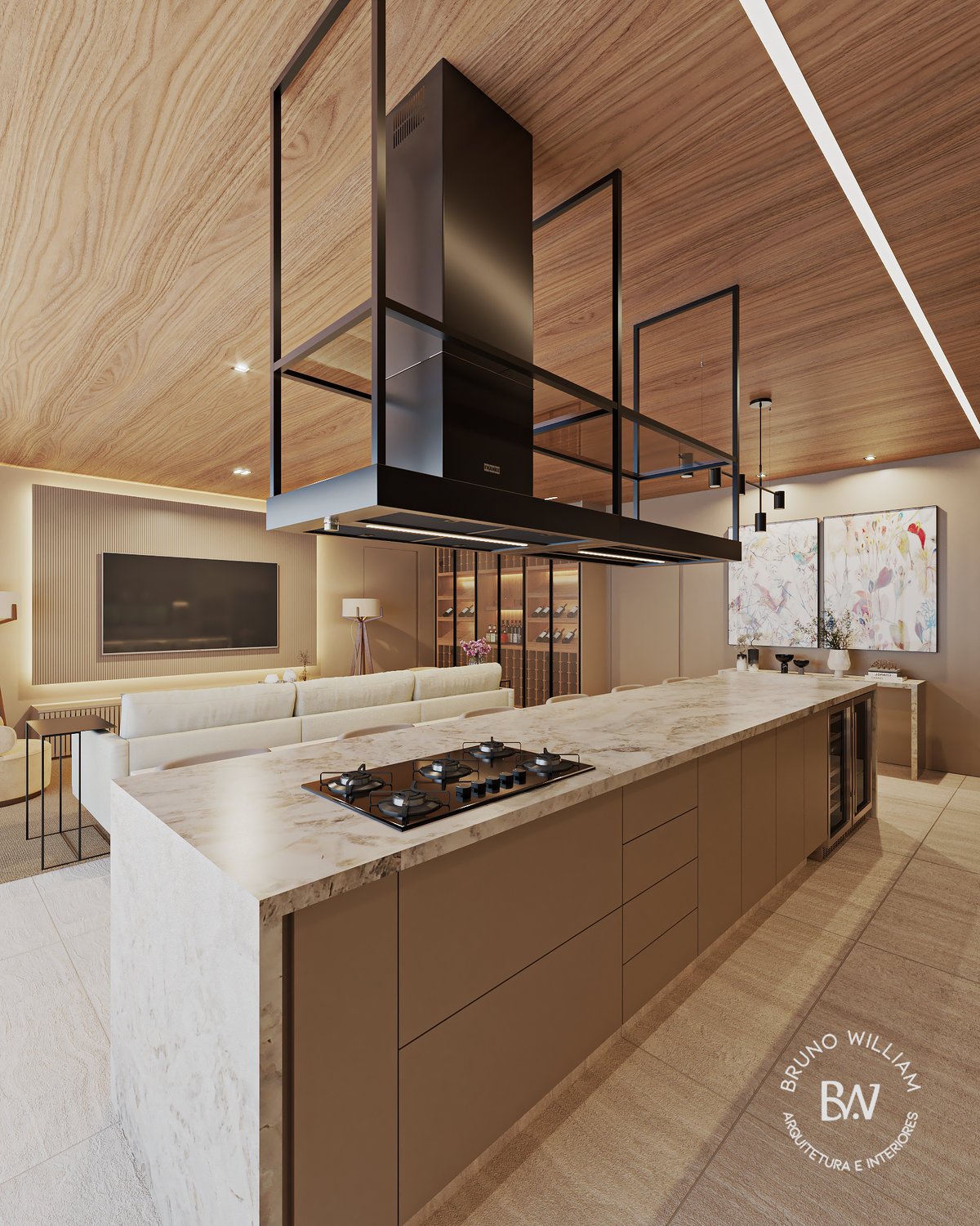 Um espaço que combina design acolhedor, integração e sofisticação. Do forro amadeirado à iluminação suave, tudo convida a viver bons momentos com quem importa. Funcionalidade e beleza caminham juntas nesse espaço pensado para receber, viver e aproveitar. Cada elemento foi escolhido com propósito: leve, elegante e atemporal.